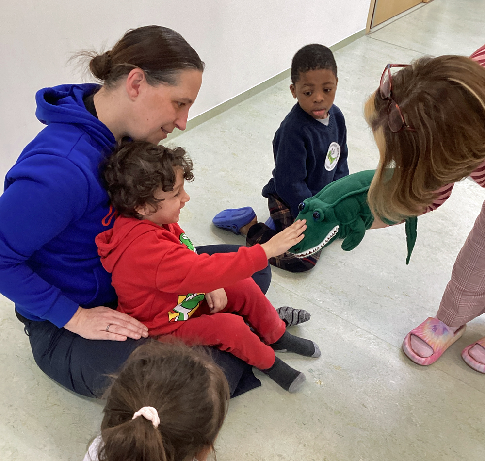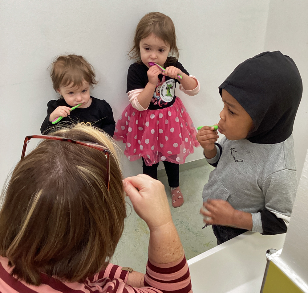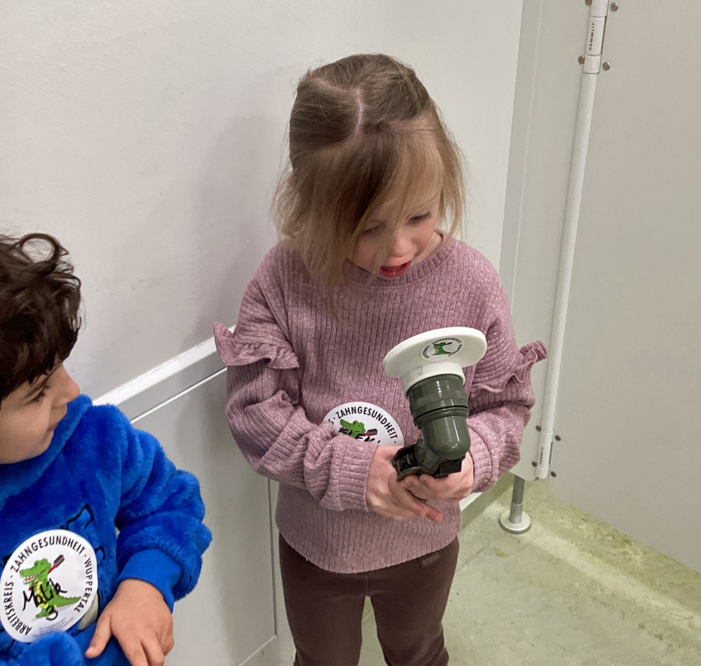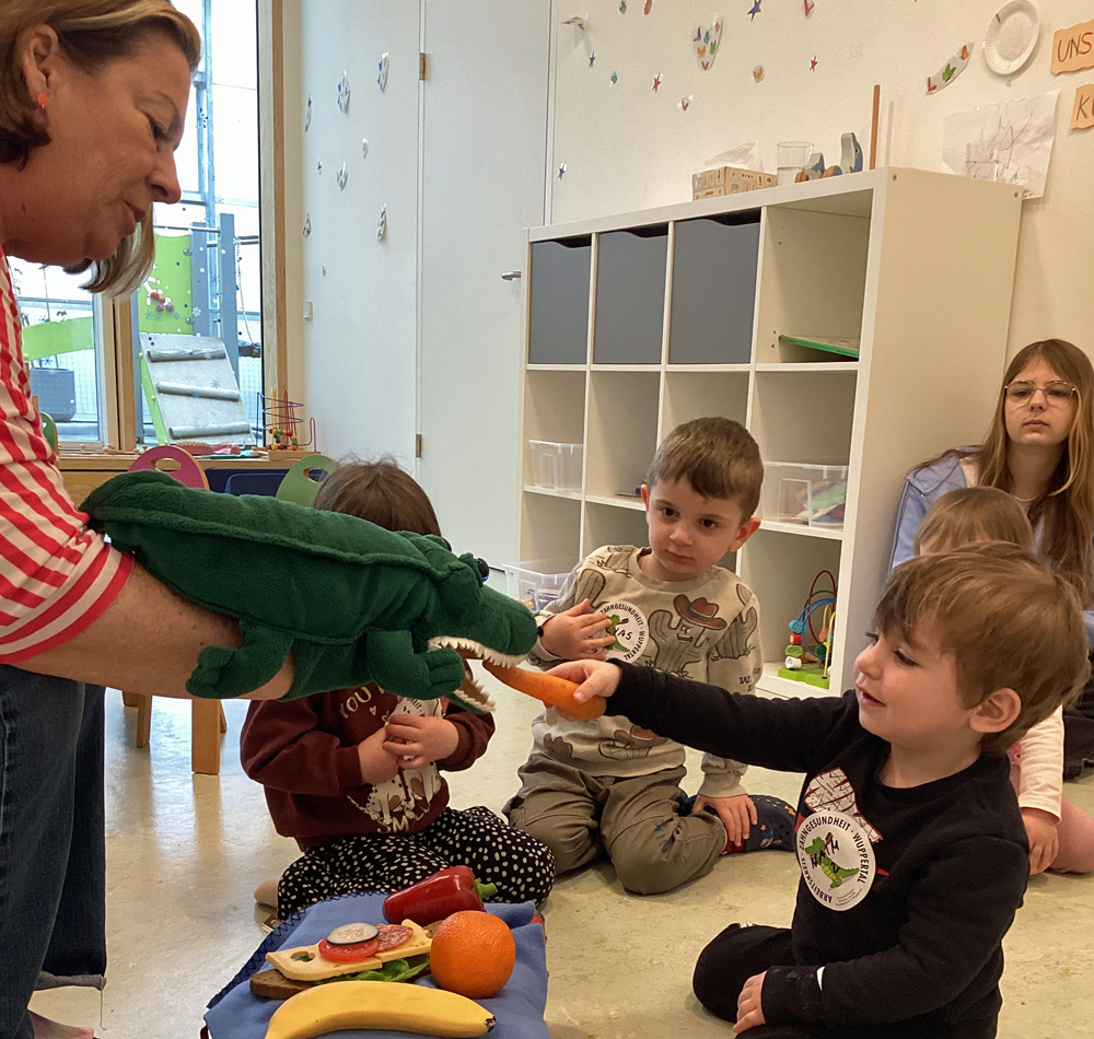 An drei aufeinanderfolgenden Tagen ab dem 18. Februar war Marion Martin vom Wuppertaler Arbeitskreis Zahngesundheit in der CVJM-Kita im BOB Campus zu Besuch. Sie brachte Micky mit, das freundliche Zahnkrokodil. Die Aufregung war groß, denn ein echtes Zahnkrokodil bekommt man schließlich nicht alle Tage zu sehen! Die Kinder begrüßten Micky mit neugierigen Blicken und ein bisschen Kribbeln im Bauch. Sie konnten ihn ganz aus der Nähe betrachten, ihn vorsichtig streicheln und ihm sogar „Futter“ geben. Mit vielen kindgerechten Materialien erfuhren die Kinder Neues zum Thema Zähne. Sie lernten, was Zähne stark und gesund macht – und was ihnen eher schadet. Micky zeigte ihnen auf spielerische Weise, warum Zahnpflege so wichtig ist und wie man gut auf seine Zähne aufpasst. Ein Highlight war das große Modellgebiss. Mit einer großen Zahnbürste übten die Kinder daran, wie man von allen Seiten putzt: vorne, hinten und auf den Kauflächen. In kleinen Gruppen putzten sie dann noch die eigenen Zähne. Als Überraschung bekam jedes Kind eine neue Zahnbürste für das Zähneputzen in der Kita geschenkt.